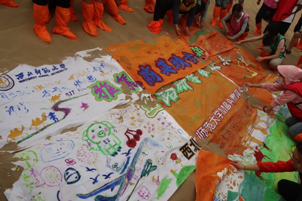 7月7日上午,“丝路文化移动课堂”系列实践教学活动之素质拓展活动在鸣沙山后麓举行。活动旨在进一步加强各级MBA学生之间的互动与了解,增强团队凝聚力。在专业人员的指导下,活动以团体赛的形式展开,全体学员被分成红、黄、蓝、绿、紫等9队,先后开展了拔旗战、万丈高楼平地起、隐藏积木等游戏项目,并以团队积分评选出比赛名次,最终,以绿队团队第一,银队团队第二、金队团队第三的好成绩落下了帷幕。